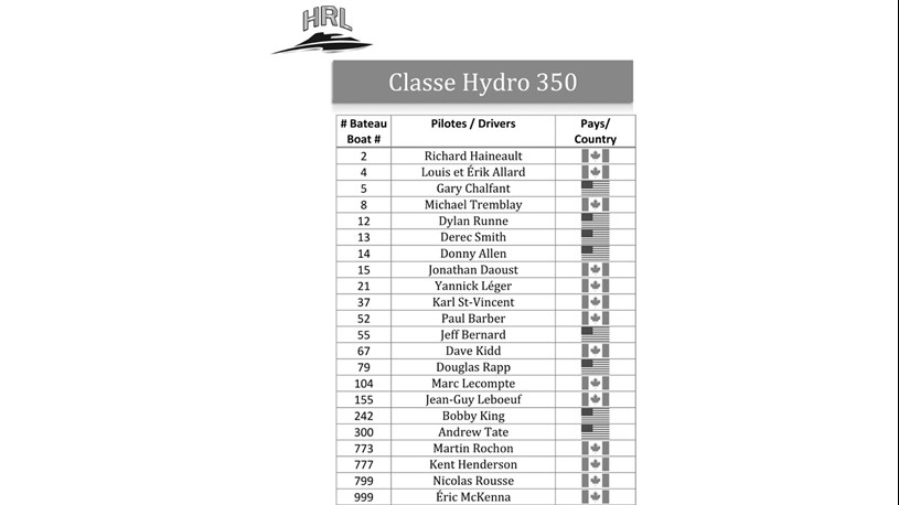 En classe Hydro350, Rémy Leblanc prendra une pause comme pilote régulier à la série HRL. Plusieurs projets personnels en 2019 l’empêchent de participer à l’ensemble des courses. L’équipe du H-799/AllardMenard.com a choisi Nicolas Rousse pour prendre les commandes de l’hydroplane, confirme Michel Arsenault, partenaire de l’équipe. Celui-ci a également déclaré : « Nicolas a beaucoup d’expérience sur le circuit et nous sommes certains qu’il pourra prendre la relève de Rémy afin de se battre pour le titre qui nous a malheureusement échappé la saison dernière, c’est-à-dire celui de champion en classe Hydro350».