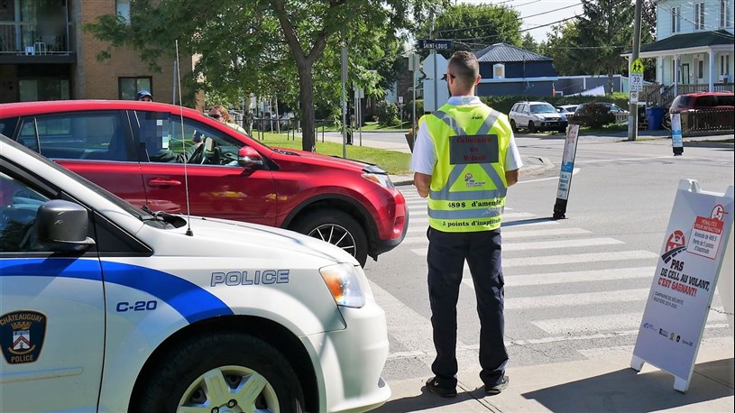 Ce samedi 12 septembre, le Service de Police de Châteauguay, assisté des agents Sécuri-Parc de la MRC, procédait à un exercice de sensibilisation sur l’interdiction du cellulaire au volant, à Beauharnois