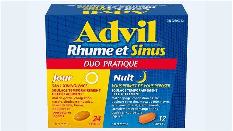 Deux lots d’Advil Rhume et Sinus Jour/Nuit Duo pratique font l’objet d’un rappel en raison d’une erreur d’étiquetage.