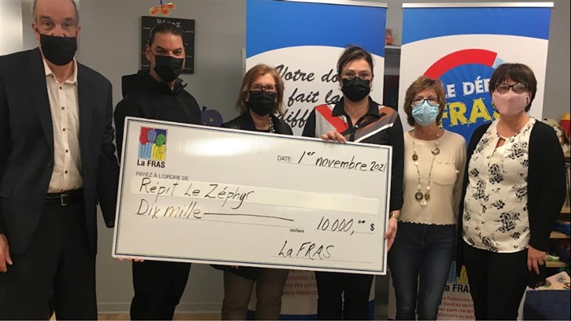 La Fondation des Ressources Alternatives du Sud-Ouest octroie une aide financière de 10 000$ à l'organisme Répit le Zéphyr. Au quotidien, la directrice générale Isabelle Corbeil et son équipe offrent des services dans deux lieux de répit, soit la maison Jean-Reid, à Salaberry-de-Valleyfield et la maison le Zéphyr, à Vaudreuil-Dorion.