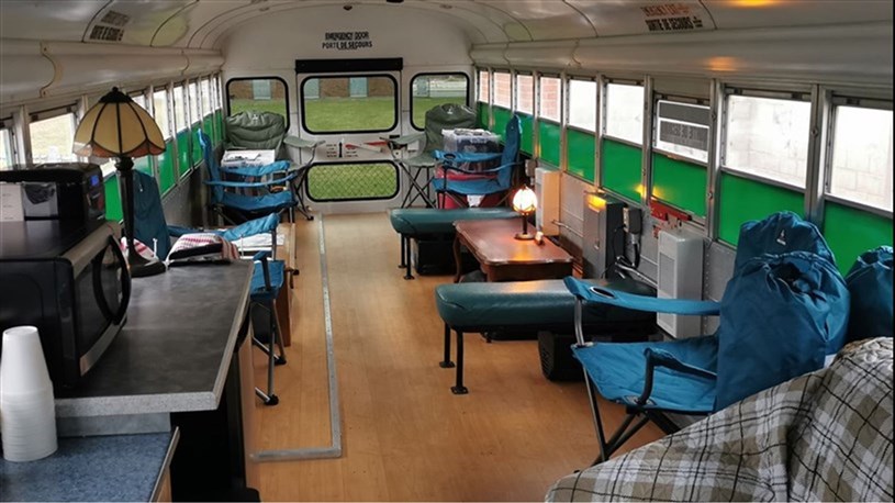 Les personnes qui grimperont à bord de l’unité de chaleur pendant cette période pourront rencontrer des intervenants qui les référeront vers la bonne ressource et déguster un bouillon de poulet chaud pour se réchauffer ou des barres granolas. Entre 8 et 10 personnes peuvent prendre place à l’intérieur de l’autobus en même temps.