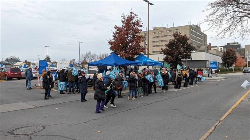 Au total, à travers la Montérégie, ce sont 6 000 travailleurs du CISSSMO qui bravent le froid et font du piquetage dans 50 lieux de la région en ce lundi 6 novembre pour manifester leur mécontentement devant la lenteur des négociations.