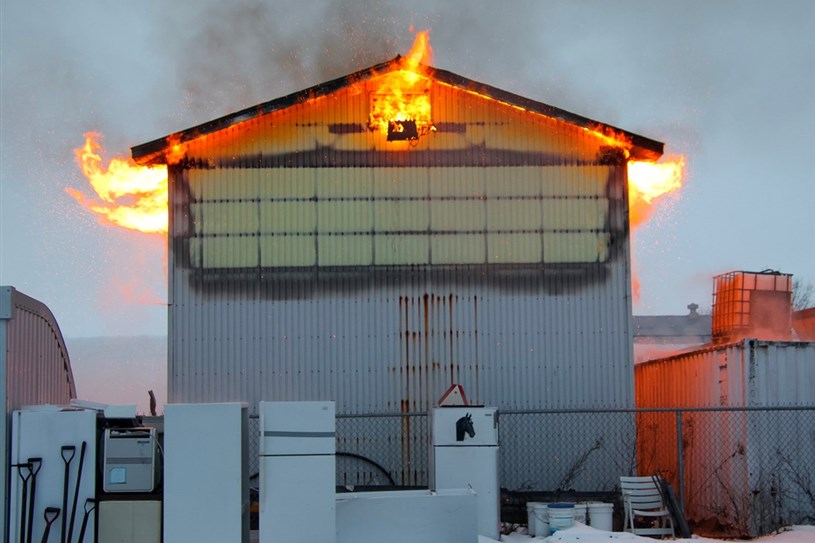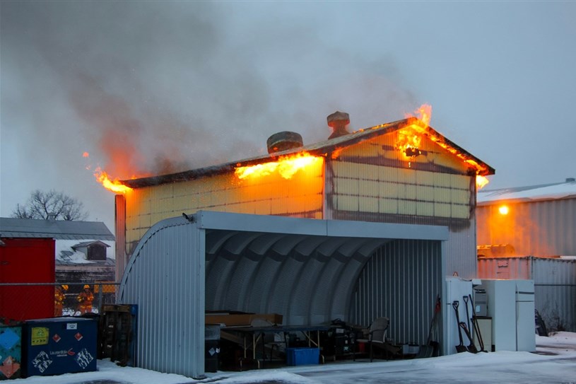 Le bâtiment où la municipalité entrepose des abrasifs a été la proie des flammes ce mercredi