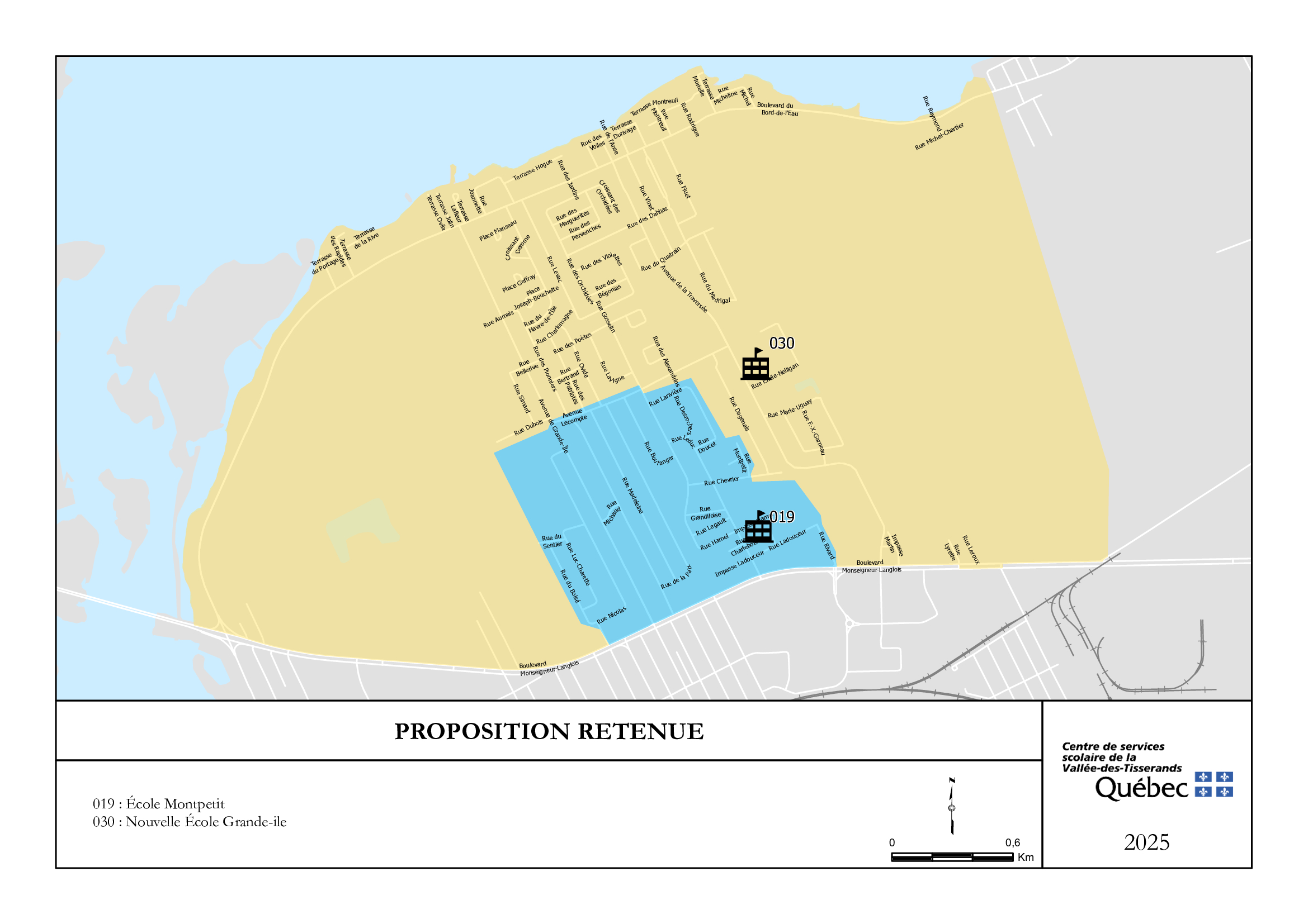 Dernièrement, le conseil d’administration du Centre de services scolaire de la Vallée-des-Tisserands (CSSVT) a approuvé la révision des quartiers scolaires du secteur Grande-Île, en prévision de l’ouverture de la nouvelle école. Ce redécoupage prendra effet pour la rentrée 2026.