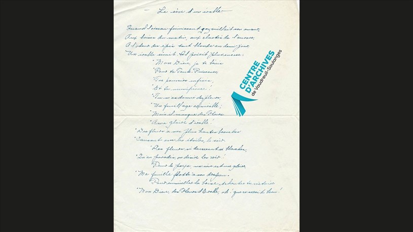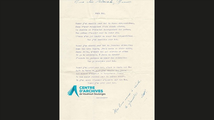 Poème non daté intitulé « Pour toi » écrit pour sa nièce Blanche-Yvonne.