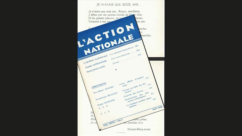 Poème intitulé « Je n’avais que seize ans » paru dans la revue L’Action nationale, vol.27, no 5, Mai 1946.