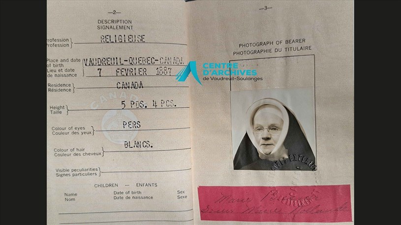 Pages du passeport de Sr Marie-Rollande utilisé lors de son voyage en Europe en 1950.
