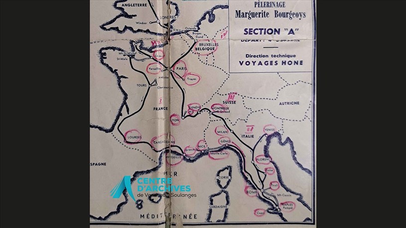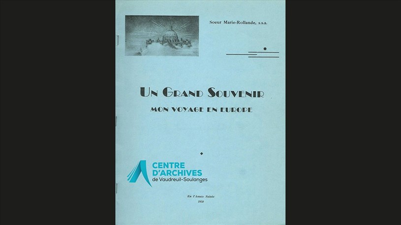 Page couverture du livret rédigé par Sr Marie-Rollande en 1950 au retour de son voyage en Europe et intitulé « Un grand souvenir, Mon voyage en Europe ».