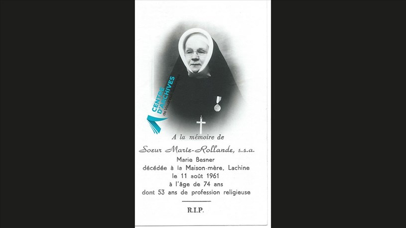 Carte mortuaire de Sr Marie-Rollande, 1961.