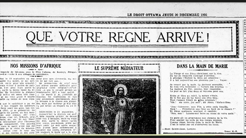 Poème intitulé « Dans la main de Marie » paru dans le journal Le Droit d’Ottawa, p. 8, 1926-12-30.