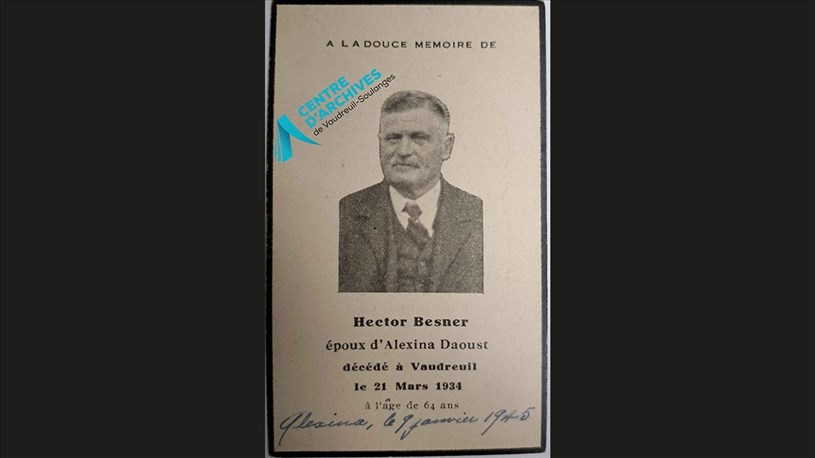 Carte mortuaire du tuteur de Marie, son frère Hector Besner, décédé le 21 mars 1934.