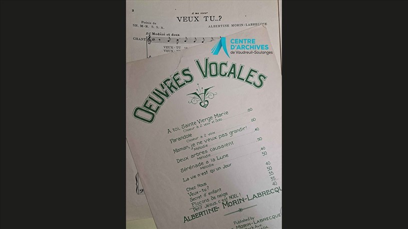 Partition de musique : paroles écrites par Sr Marie-Rollande, « Œuvres vocales ».