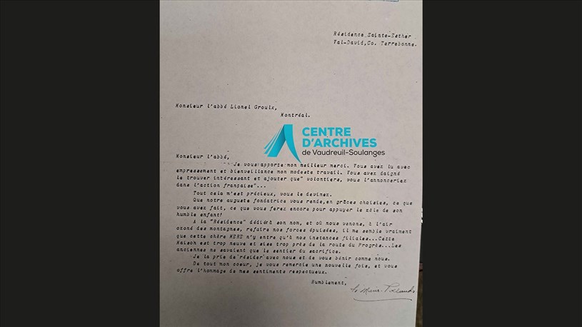 Lettre non datée de Sr Marie-Rollande à l’abbé Lionel Groulx. Correspondance pour révision de textes.