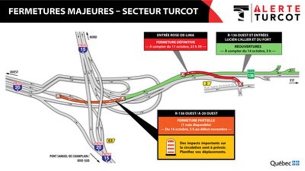 Changement d'itinéraire pour les véhicules lourds sur l'autoroute 40 à Vaudreuil-Dorion